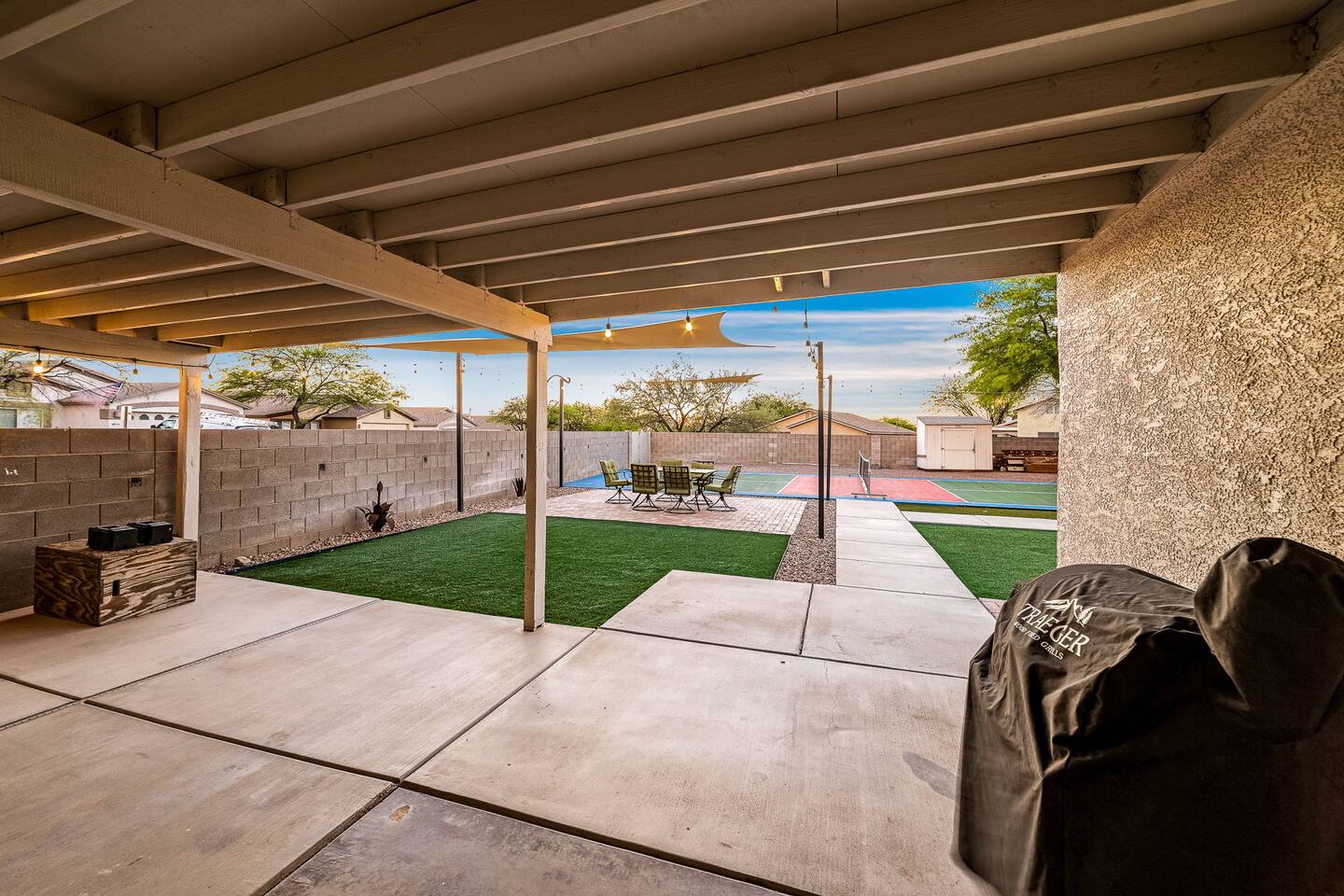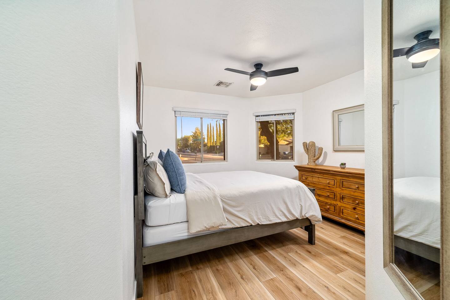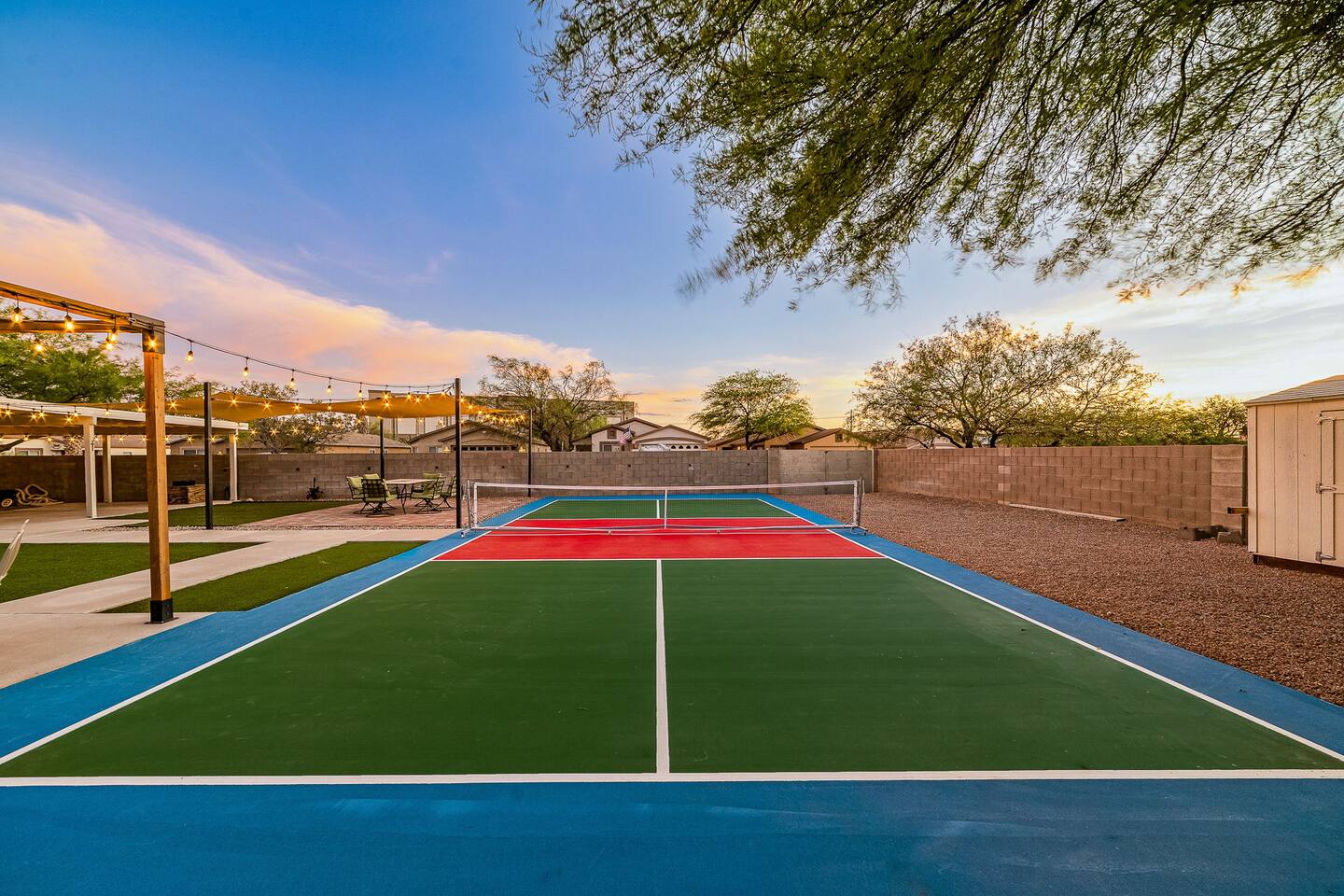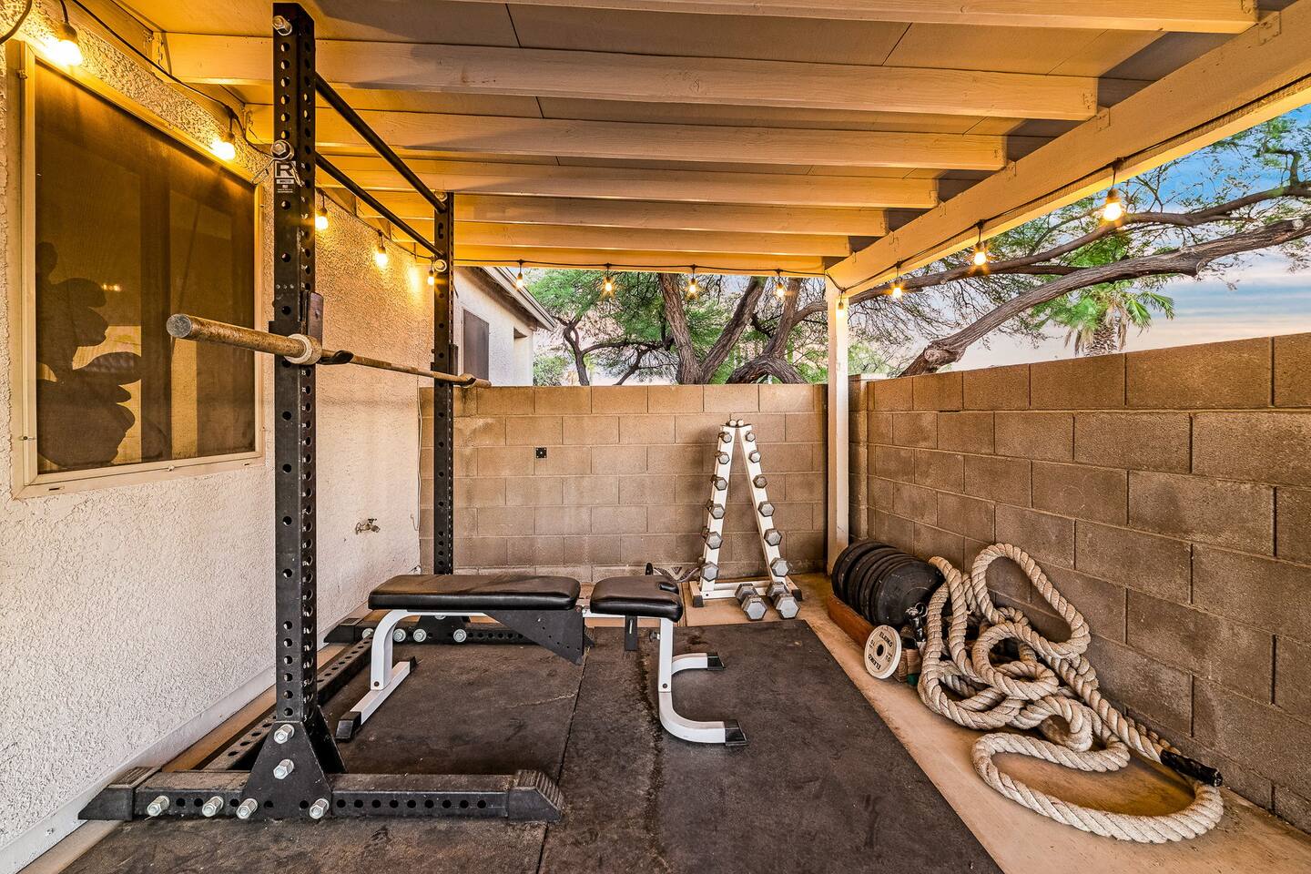 Uncover Tucson's hidden gem – a spacious retreat ideally situated for dining, trail exploration, and easy access to Saguaro National Park. Nestled in a tranquil neighborhood, this home offers a generous yard, a well-equipped gym, and modern conveniences like high-speed WiFi, perfect for work in the dedicated office space. Plus, it's just moments away from the Tucson bike trail. Book now to experience the perfect blend of comfort and adventure in Tucson! This space is a cozy, open floor plan with vaulted ceilings. There are 4 bedrooms to sleep in. The master bedroom has a king bed, in two guest rooms there are queen beds, and the other has a full bed. The kitchen should have all the basic necessities- pots, pans, a rice maker, blender, olive oil, spices, and filtered water. The backyard has a full gym setup, and an outdoor seating area around the fire pit in addition to our BRAND NEW full-sized Pickleball court in the backyard! Welcome to our cherished home, which we're delighted to share with you during our absence. We kindly ask that you treat it with the same love and care that we do. Please note that certain areas, including the garage, kitchen pantry, and two closets, are off-limits as they are securely locked. Thank you for your understanding, and please make yourselves at home and enjoy your stay! We will be available via txt or phone call any time of day for any questions and needs. Please don't hesitate to reach out! This is a very quiet, family-friendly neighborhood that we love so much. There is an awesome park within walking/biking distance that has baseball fields, a skate park, a playground, and wide open grassy areas. We hope you enjoy this neighborhood as much as we do! The best way to get around is by car. There is also the popular Tucson Bike Loop located about a mile away! This is a NON-smoking property (no cigarettes, e-cigarettes, vaping, etc.) Any signs of smoking or damage will incur additional charges. We have the best neighbors, and to respect their peace we ask you to observe quiet hours between 9:00pm and 8:00am.