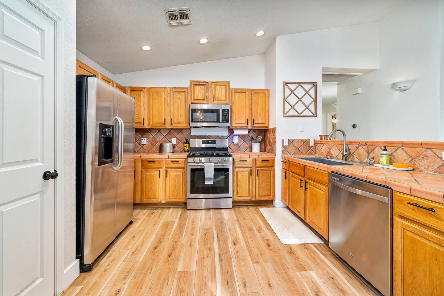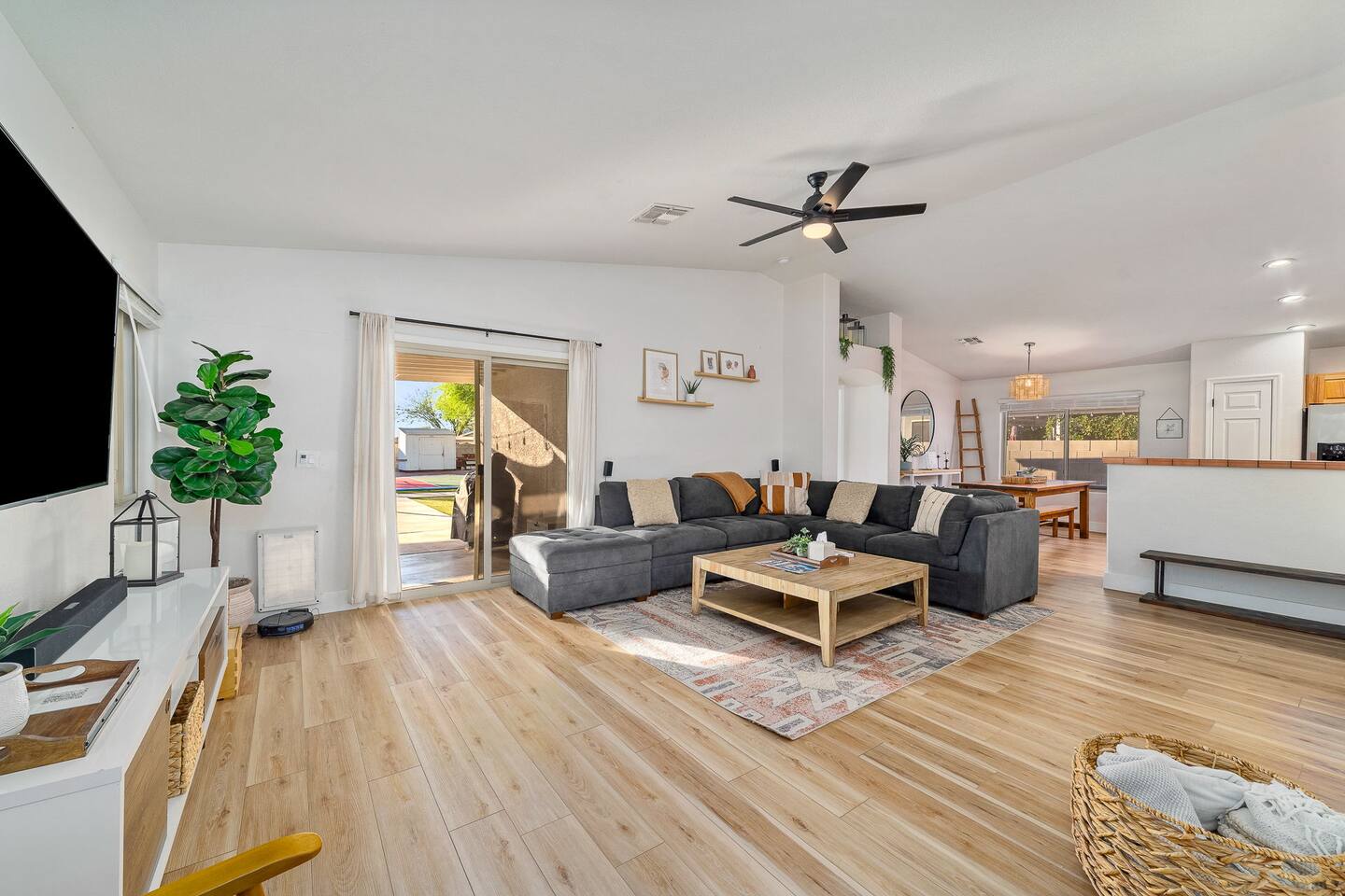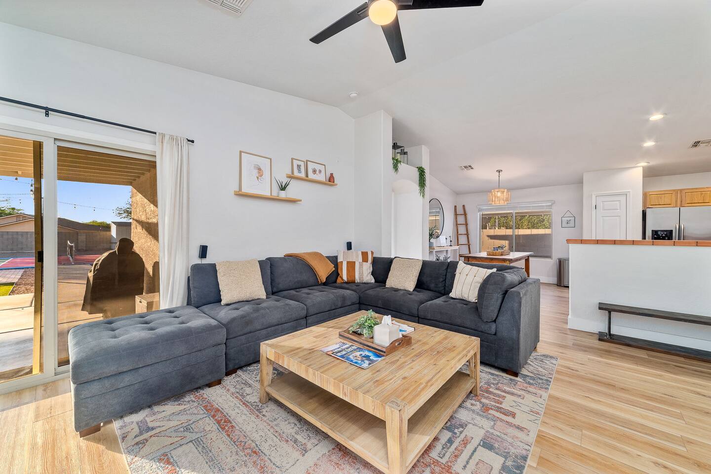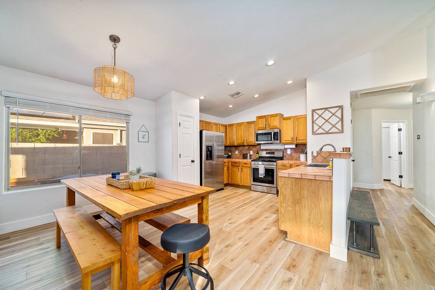 Uncover Tucson's hidden gem – a spacious retreat ideally situated for dining, trail exploration, and easy access to Saguaro National Park. Nestled in a tranquil neighborhood, this home offers a generous yard, a well-equipped gym, and modern conveniences like high-speed WiFi, perfect for work in the dedicated office space. Plus, it's just moments away from the Tucson bike trail. Book now to experience the perfect blend of comfort and adventure in Tucson! This space is a cozy, open floor plan with vaulted ceilings. There are 4 bedrooms to sleep in. The master bedroom has a king bed, in two guest rooms there are queen beds, and the other has a full bed. The kitchen should have all the basic necessities- pots, pans, a rice maker, blender, olive oil, spices, and filtered water. The backyard has a full gym setup, and an outdoor seating area around the fire pit in addition to our BRAND NEW full-sized Pickleball court in the backyard! Welcome to our cherished home, which we're delighted to share with you during our absence. We kindly ask that you treat it with the same love and care that we do. Please note that certain areas, including the garage, kitchen pantry, and two closets, are off-limits as they are securely locked. Thank you for your understanding, and please make yourselves at home and enjoy your stay! We will be available via txt or phone call any time of day for any questions and needs. Please don't hesitate to reach out! This is a very quiet, family-friendly neighborhood that we love so much. There is an awesome park within walking/biking distance that has baseball fields, a skate park, a playground, and wide open grassy areas. We hope you enjoy this neighborhood as much as we do! The best way to get around is by car. There is also the popular Tucson Bike Loop located about a mile away! This is a NON-smoking property (no cigarettes, e-cigarettes, vaping, etc.) Any signs of smoking or damage will incur additional charges. We have the best neighbors, and to respect their peace we ask you to observe quiet hours between 9:00pm and 8:00am.